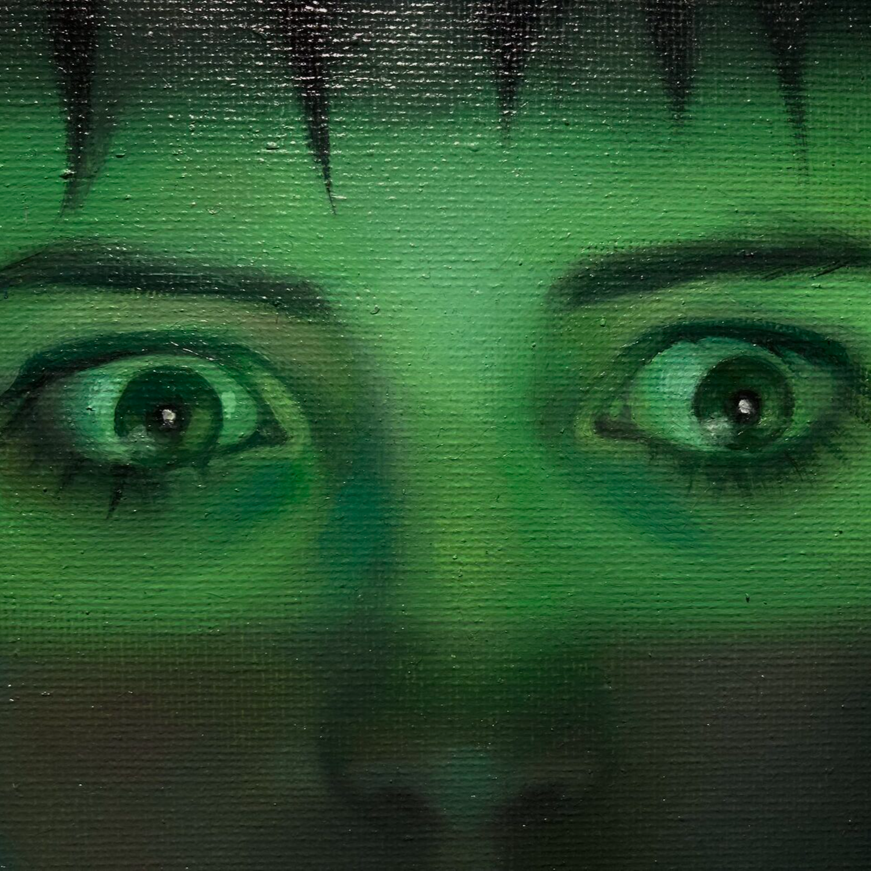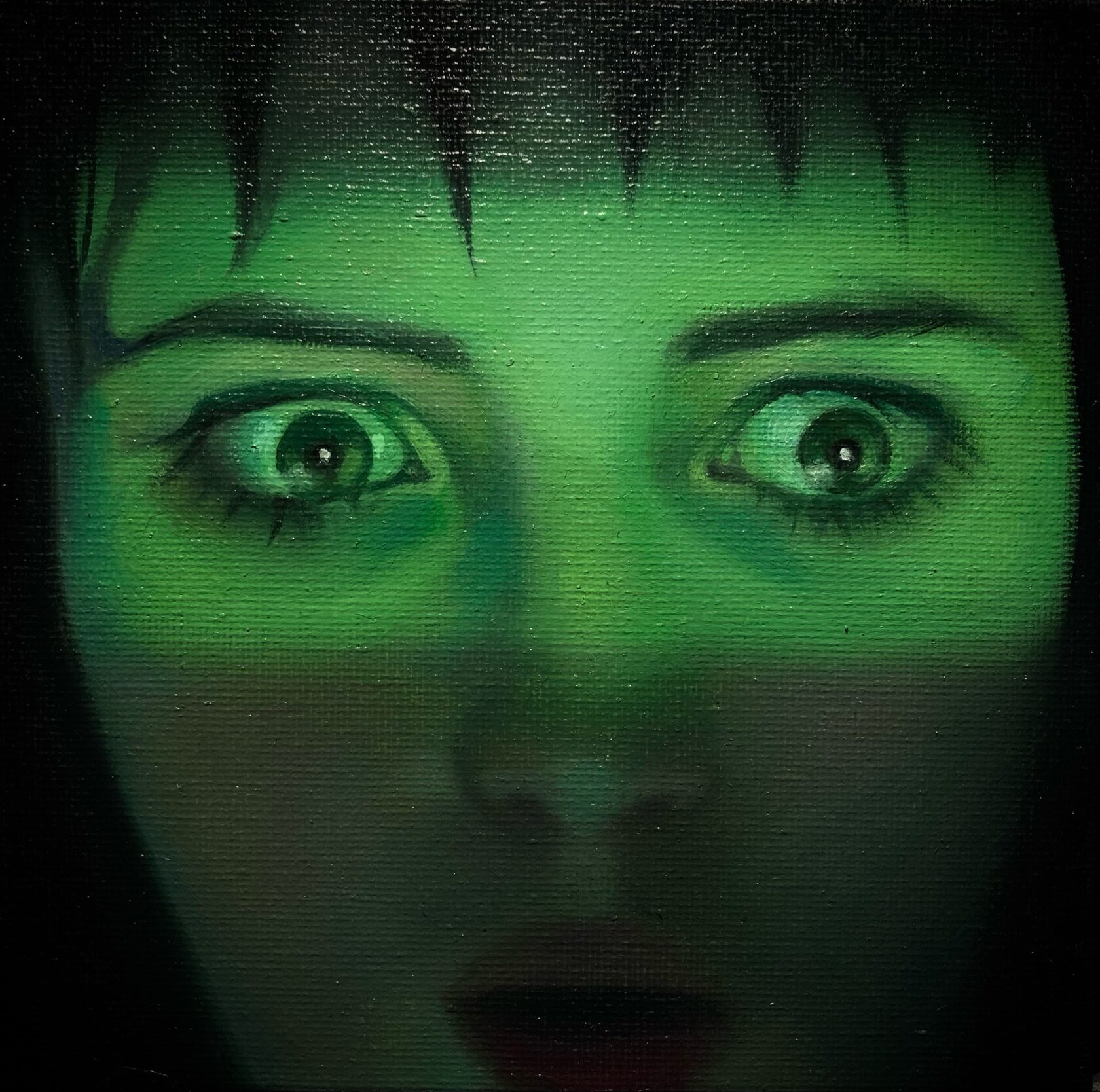 15x15 см. Холст на картоне, масло, блестки, лак. 2023